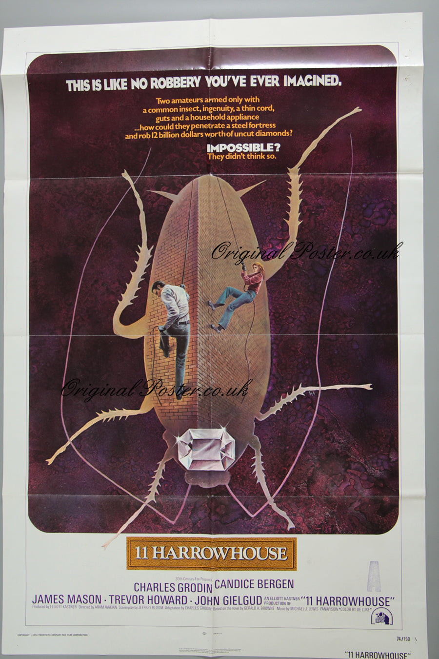 First release 1974 litho printed American film poster for "11 Harrowhouse" featuring an unusual type of robbery.