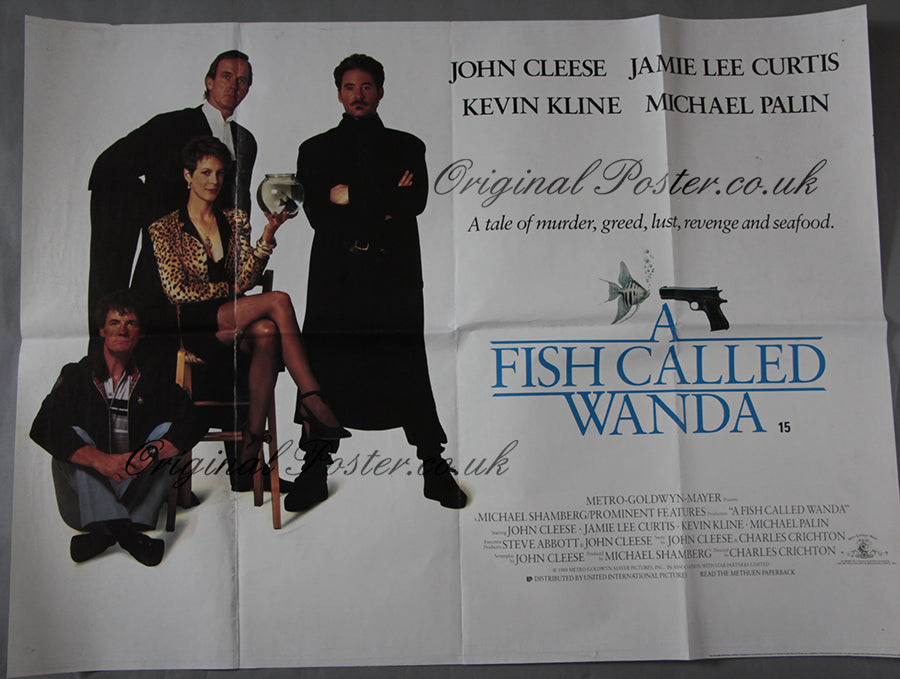 The original British quad from the year 1988 for this very successful comedy picturing John Cleese, Jamie Lee Curtis, Kevin Kline and Michael Palin plus a very colourful tropical fish called Wanda.