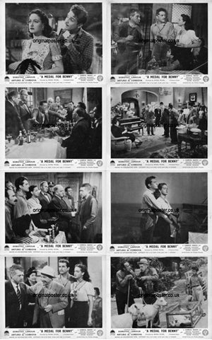 Set of 8 British cinema lobby cards printed by Jarrold & Sons Ltd., Norwich. These delightful old cards do have a little creasing as seen.
