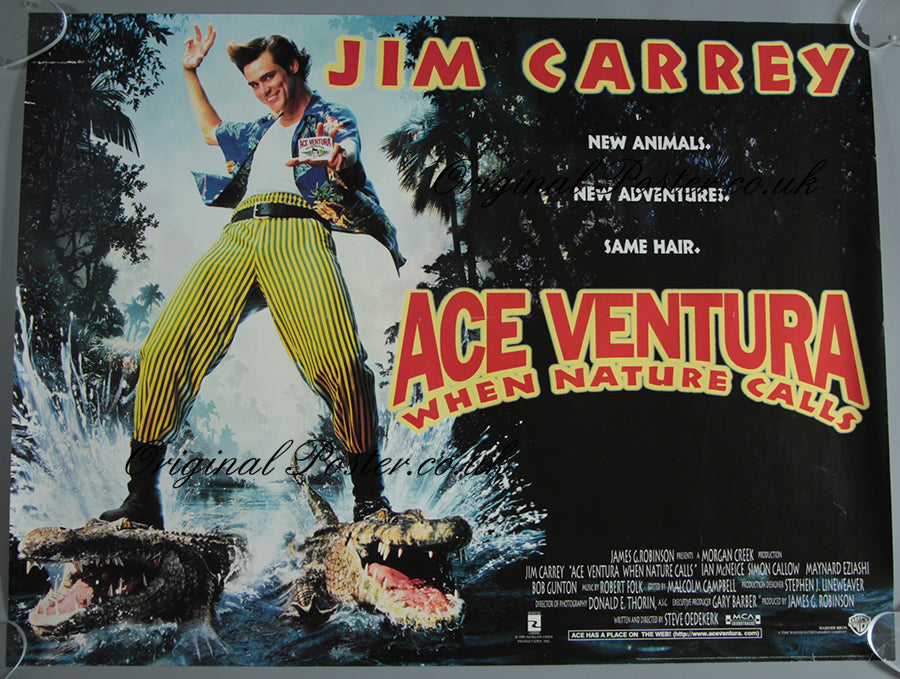 The British quad film poster with Jim Carrey wearing scary trousers whilst skiing on the crocodiles. Jim displays his calling card whilst maintaining perfect balance and hair. Great British quad from 1995 with a sense of adventure. Rolled condition British Quad film poster.