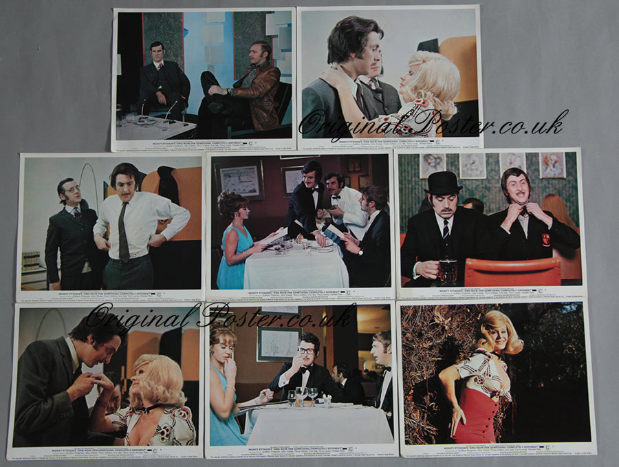 Monty Python 1971 cinema lobby card set picturing all our favourite characters in some really funny sketches including "Upper Class twit of the year race", "Five minute argument" and more. Excellent condition with no pinholes.