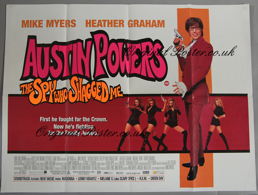 Heather Graham looks terrific and fair play for taking on the role of Felicity Shagwell - the unlikely conquest of Mike Myers complete with frilly sleeved shirt and gormless expression. Very successful at the Box Office the soundtrack featured new music from Madonna, Lenny Kravitz, Mel G (Scary Spice), REM and Green Day. This film poster is in folded condition with a tiny paper loss blemish in the 'D' of 'Shagged'.
