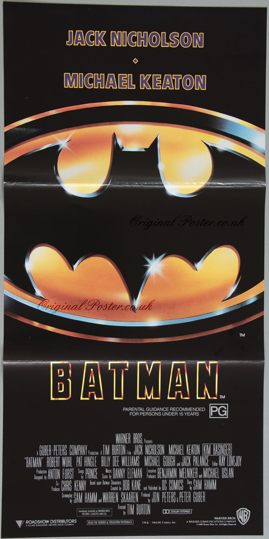 Tim Burton's "Batman" original Australian day-bill film poster complete with DC's Dark Knight Bat Logo in folded condition. No pinholes.