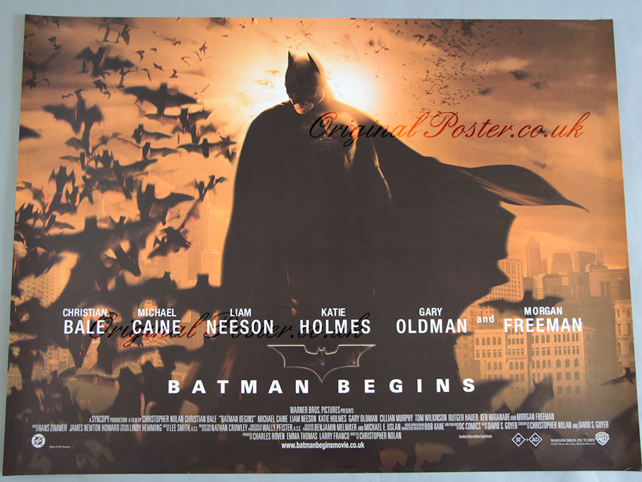 This rolled condition British Quad film poster from 2005 marks the beginning of the Christopher Nolan Batman trilogy. The Bats make their decent towards Gotham city.