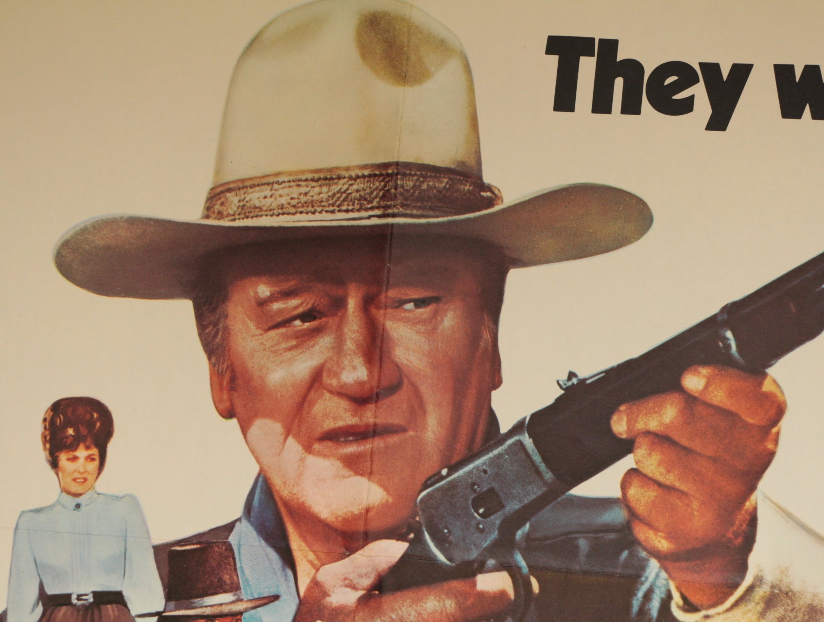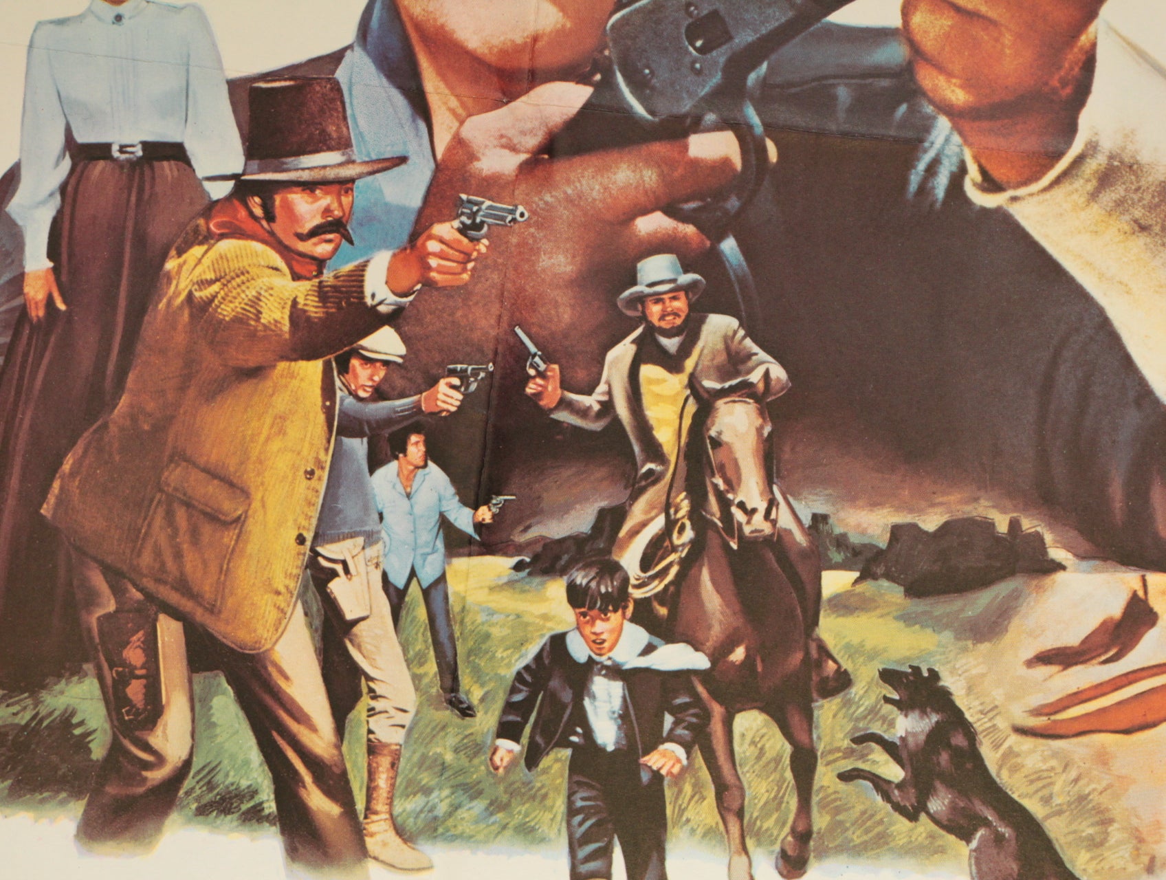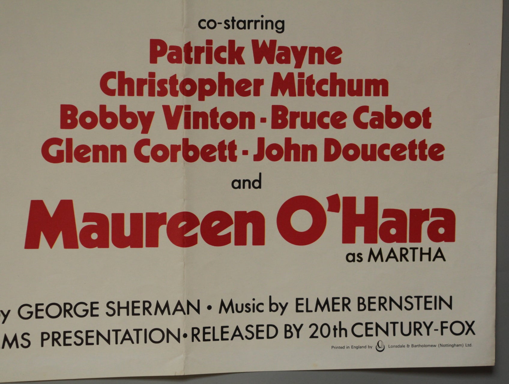 Richard Boone is the baddie but it is John Wayne who is wonderfully portrayed here in a central role together with Maureen O'Hara for what is to prove the fifth and last round-up for the pair. Original British quad for "Big Jake" picturing John Wayne artwork painted by Tom Chantrell specially made for display in an ABC cinema. Printed in England by Lonsdale & Bartholomew (Nottingham) Ltd. Folded condition with no pinholes as issued to the cinema.