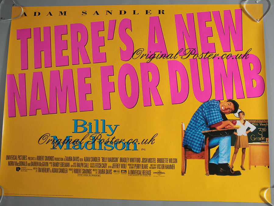 Rolled double-sided "Billy Madison" Adam Sandler British quad film poster from 1994.