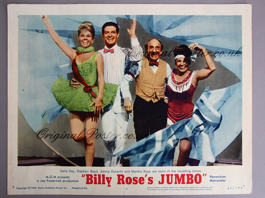 This original 1962 lobby card features circus stars Doris Day, Steven Boyd, Jimmy "Snozzle" Durante and Martha Raye.