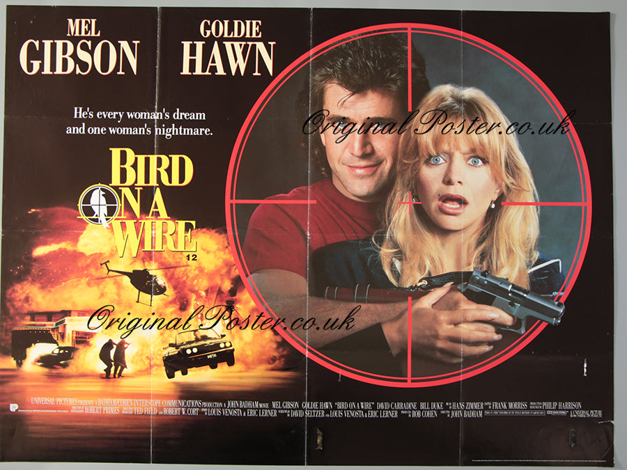 Goldie Hawn is pictured with her wonderful surprised look as the old flame who gets caught up on the run with Mel Gibson who is a former small time drugs dealer. John Badham and the poster features chase scenes from the film together with the main stars as the target. 1 inch closed tear on the bottom right and sellotape snipe mark at bottom right.