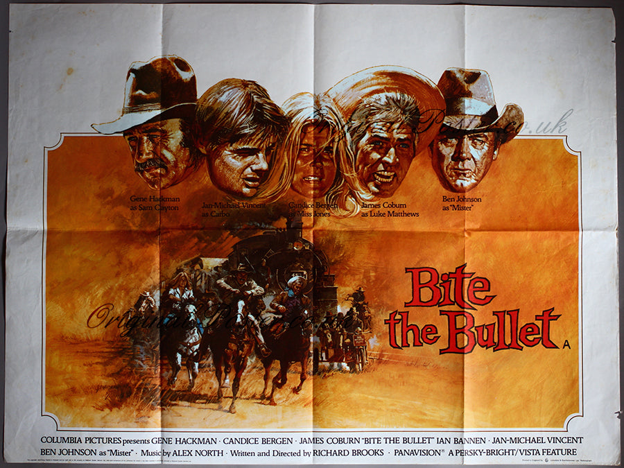 Great Western film poster with Gene Hackman, James Coburn and Candice Bergen leading the 700 mile horse race through Colorado and New Mexico. Printed in England by Lonsdale & Bartholomew of Nottingham.