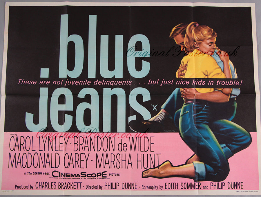 Lovely fashionable colours used with a teenage tagline and art by Tom Chantrell with the artists printed signature by the back pocket of Carol Lynley's denim jeans, this X certificate first release original film poster has printing by Stafford & Co Ltd Netherfield, Nottingham and London.