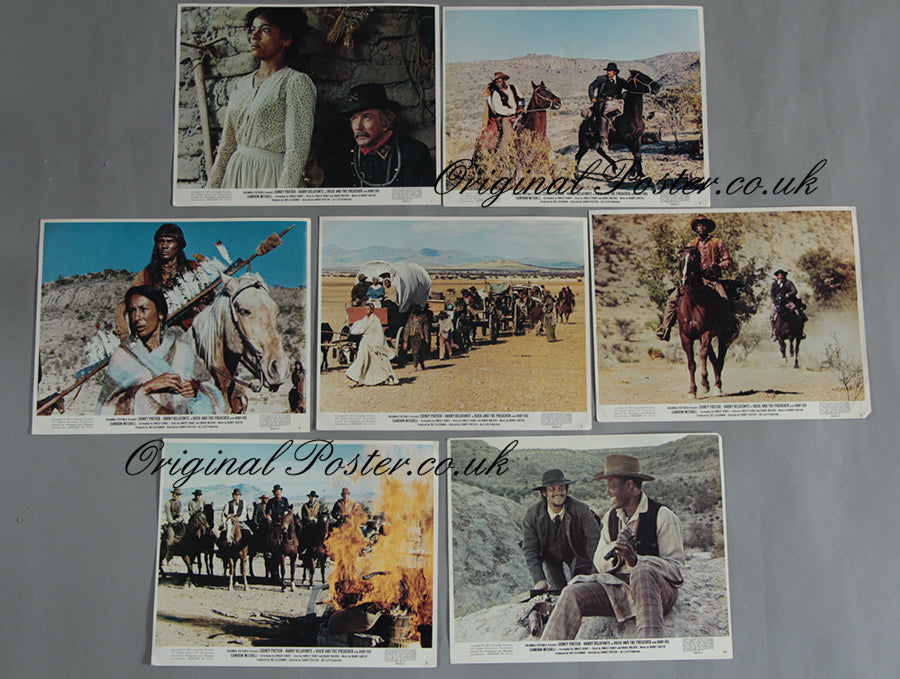 Seven full colour Columbia Pictures front of house cinema lobby cards for "Buck and the Preacher" in excellent condition with no pinholes having come direct from a British cinema. This was Sydney Poitier's first film as director in which he stars in the lead role as 'Buck'.