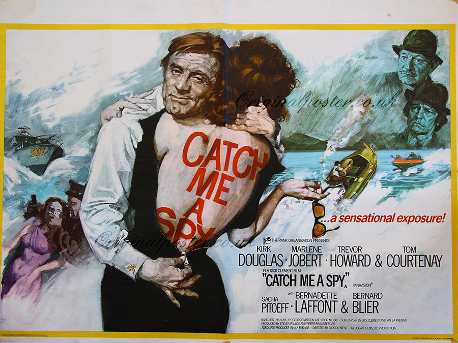 This British quad film poster from the year 1971 came from the Plaza cinema and was printed in England by W.E. Berry Ltd. of Bradford. Terrific Italian artwork with great likenesses of Kirk Douglas, Trevor Howard and Tom Courtenay including fine action scenes from this British thriller directed by Dick Clement. A few old tape marks in the border as seen.
