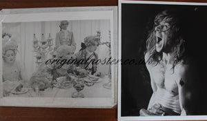 Two black and white stills complete with Palace Pictures synopsis sticker on the reverse, one stating "Micha Bergese as the Huntsman in the first throes of his transformation into a wolf". The other still reverse sticker states "A well-to-do wedding party is transformed by a witch's curse in Neill Jordan's "The Company of Wolves" Palace Pictures. Release date Sept. 21 1984".