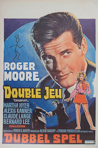 Belgian cinema poster with a wonderful image of Roger Moore in his days before James Bond. Fantastic 60's ladies fashion and the very powerful 'Saint' logo which was a brilliant conception for the time and still works well today.