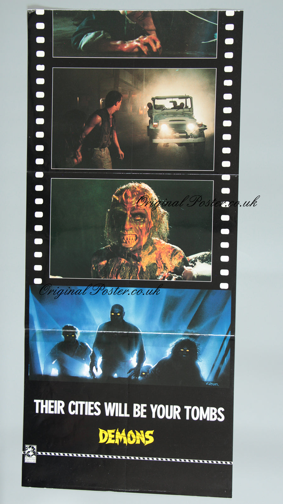 This film poster bears the printed signature of the artist E. Sciotti and it features the main artwork for the film plus two photos from the film and part of a third photo as this is an incomplete film poster. The poster has a glossy finish and 2 horizontal folds with some tape at the lower third on the reverse plus a red felt cinema show notice on the reverse which does not show through.