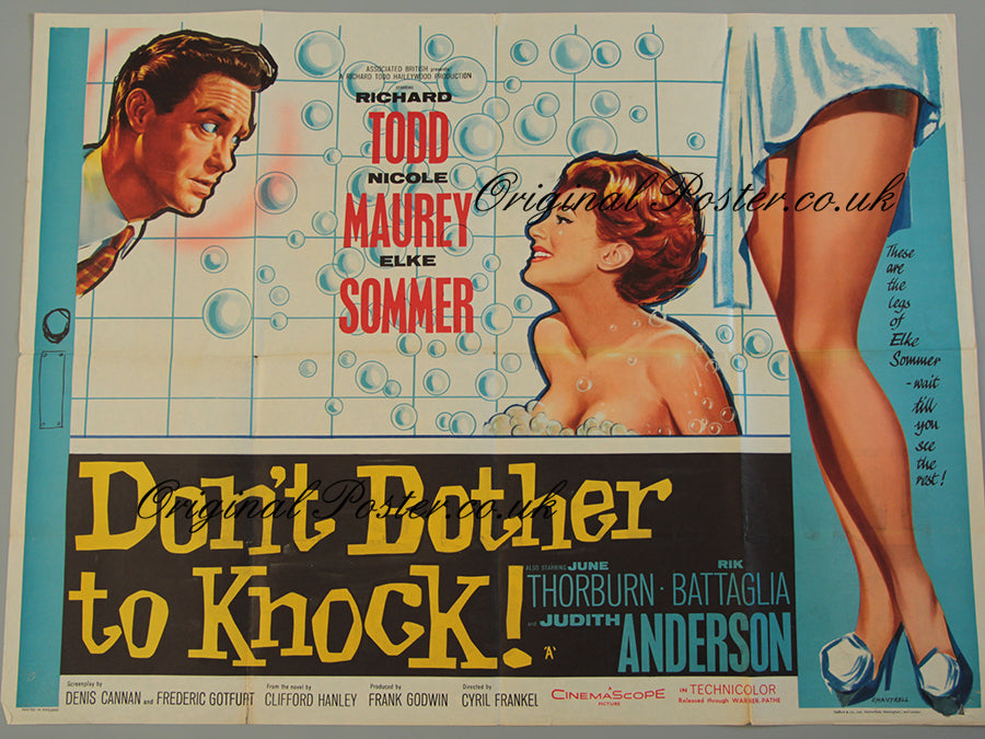 This 1961 film poster features the printed signature of British artist Tom Chantrell together with great portraits including the legs of Elke Sommer and a humorous tag line. This CinemaScope Associated British film poster was printed by Stafford & Co of Netherfield , Nottingham and London. Pinholes and some small areas of restoration tape to the reverse as the paper is fragile.