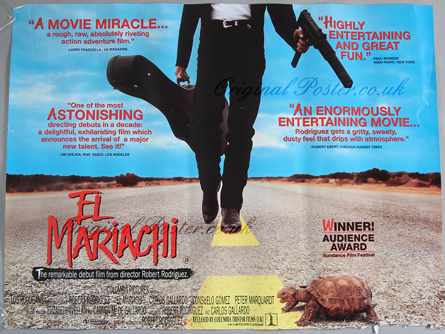 The debut film from director Robert Rodriguez, this UK Quad is rolled but does have heavy edge wear at the bottom right and top left corner missing. The faults would frame out and do not detract from the design of this cult film poster.
