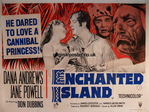 An interesting piece of British quad history as this was most probably the last quad to feature the RKO Radio Pictures logo. By the time production had completed RKO had been wound up and distribution was by Rank / Warner. As an interesting footnote this British quad bears the evidence of the circular board of film censors no. 2 Malta and we travelled to Malta to purchase this poster. The poster was printed in England by T. P. Dana Andrews and Jane Powell and the tagline would have been quite daring in 1958.
