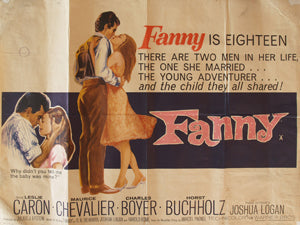 There were two variations on the British quad by Chantrell with this one making reference to Leslie Caron's baby and the artwork being more serious in nature as the consequence for the father Horst Buchholz and the mother Leslie Caron become the main concern for the poster. This poster bears the Maltese censor mark and has many pinholes plus a creamy paper with darker marks from cinema use. The colours are bright and the white strip is not on the poster, it is all creamyand consistent. The paper loss at the corners has had amateur restoration