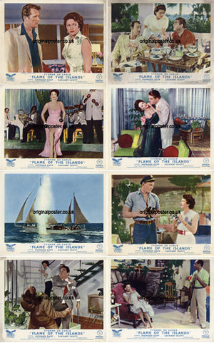 Full set of 8 British cinema front of house lobby cards. A delight to look at the chosen card as the background detail reveals shadows on the wall, and a vintage 50's television set on stand, Trucolor by Consolidated from Republic Pictures.