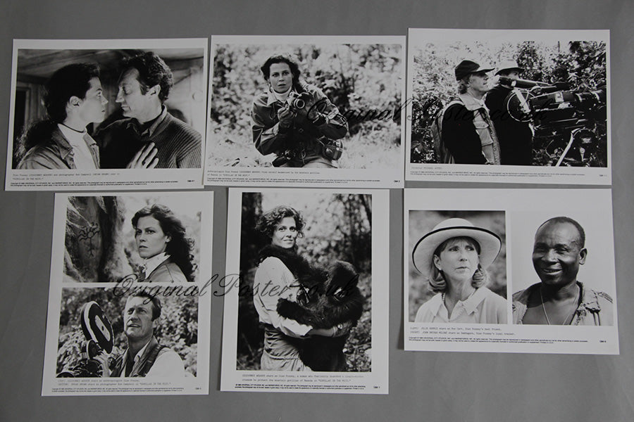 Sigourney Weaver stars as Diane Fossey who launches a crusade to protect the mountain gorillas of Rwanda in Gorillas in the Mist. Six great FOH publicity photos each with a synopsis at the foot.
