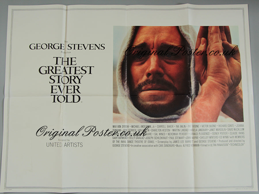 Epic story with so many stars of top quality "The gReatest Story Ever Told" quad dates from 1965 and the film is a quality production from director and producer George Stevens. Printed in England by Stafford & Co. of Nottingham & London.