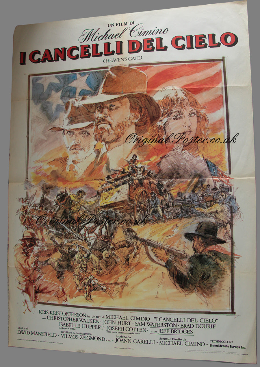 Michael Cimino directed "Heaven's Gate" which was a very big budget production and critically acclaimed. This is the first release Italian film poster from 1981 featuring full colour artwork printed in Italy by Rotolitografica Roma. The poster has restoration tape applied to the reverse at the top right vertical and horizontal fold line and has small paper loss at the top centre cross fold.