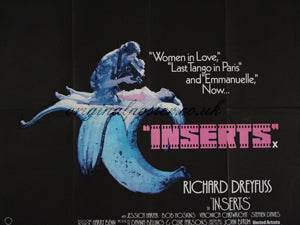 The X certificate British quad from 1975 printed in England by Lonsdale & Bartholomew Ltd. of Nottingham picturing Richard Dreyfuss and set in the 1930's in Hollywood as he makes a porno movie. Folded condition as issued to the cinema.