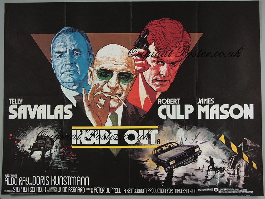This 1975 brilliantly painted British quad film poster pictures Telly Savalas together with James Mason and Robert Culp who look to recover Nazi gold during the Cold War. Atmospheric paintings capture the action and Telly Savalas was hugely popular at the time die to his TV role as a cop in "Kojak" with the famous phrase "Who loves ya baby!". Printed in England by W. E. Berry of Bradford and in folded condition as issued to the cinema.