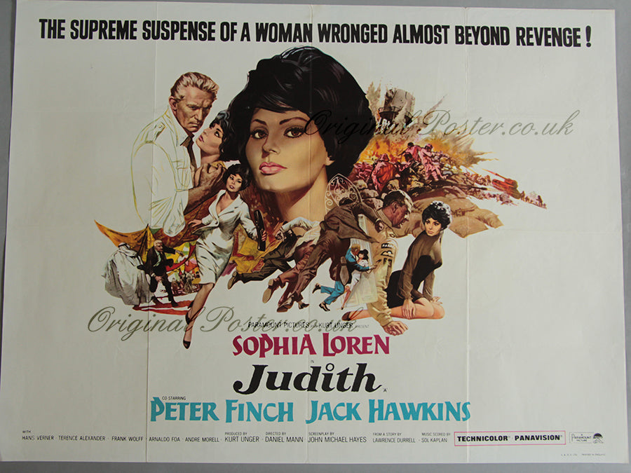 Sophia Loren is beautifully painted five times in this first release 1969 Paramount Pictures British Quad film poster printed in England by S. & D. S. Ltd. Judith is an agent of the Jewish Underground Organisation looking too expose Nazi war criminals.