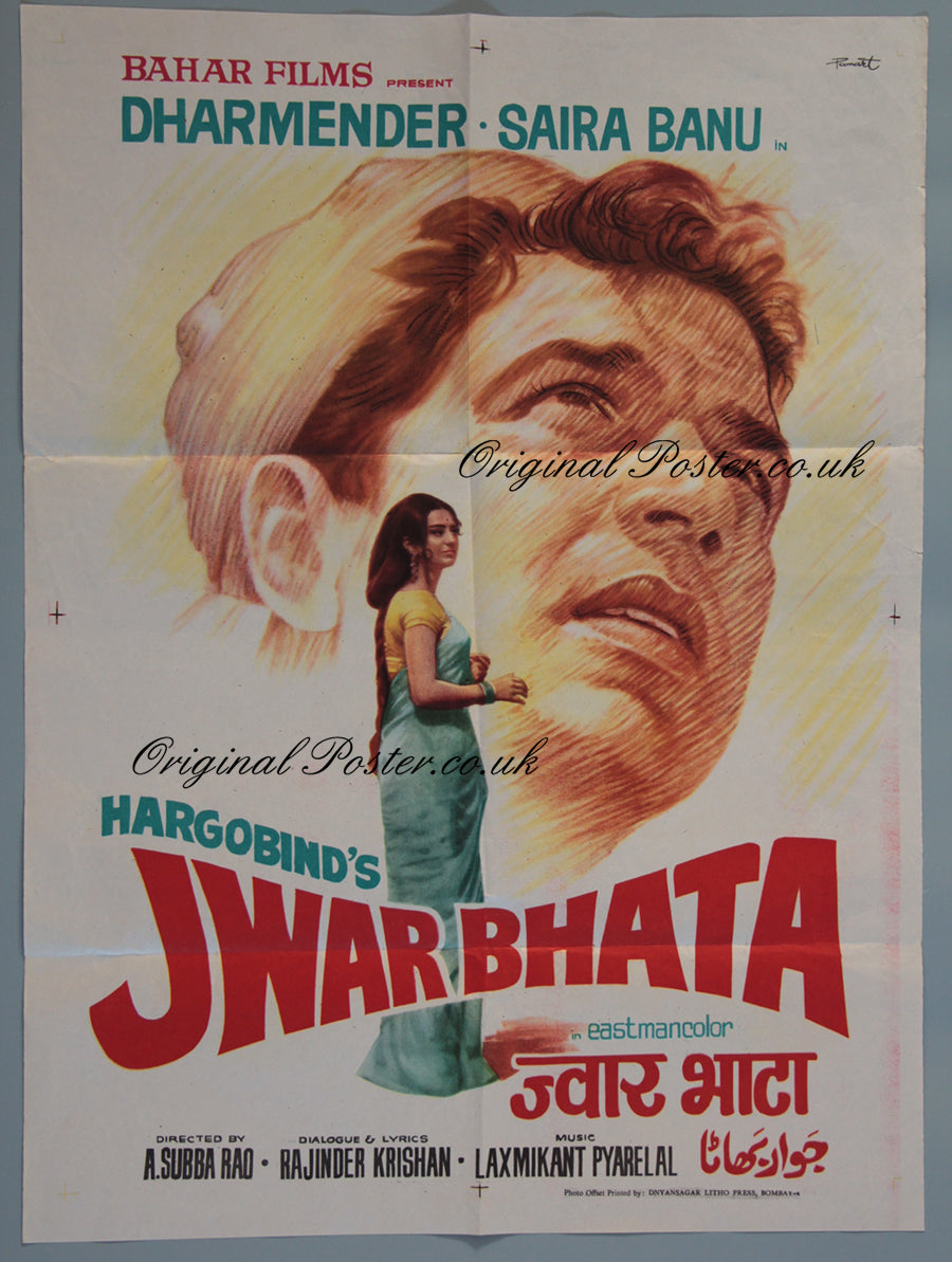 Printed by DNYANSAGAR LITHO PRESS, BOMBAY in 1973, this folded Indian film poster has classy artwork with the printed signature of the artist at the top right.
