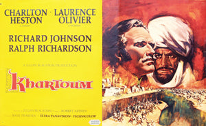 Deep colours - Great artwork for this unusual piece with artwork depicting Charlton Heston as Gordon together with Laurence Oliver as the Mahdi . Central vertical fold line.