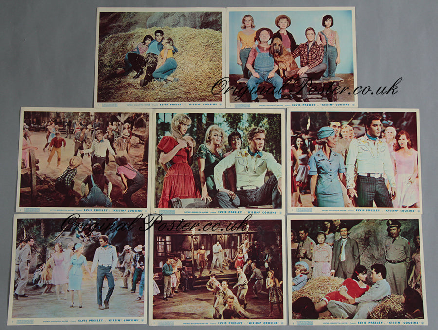 Elvis Presley is pictured in great form in these 1964 first release cinema front of house lobby cards. Each card is individually numbered and in full colour with great photos of the King who actually plays the two leads in this romantic comedy musical. Excellent condition with no pinholes.