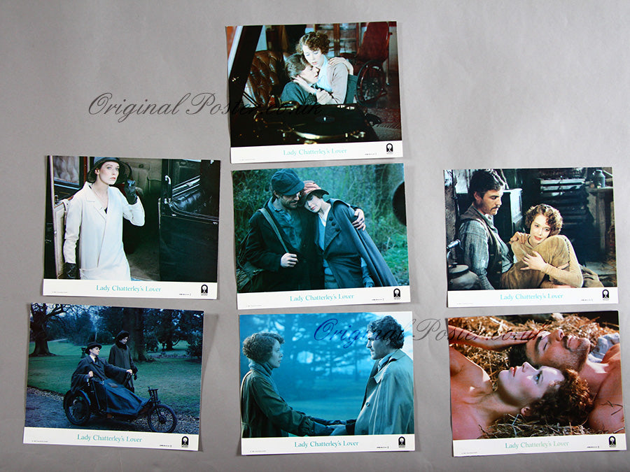 The 1981 front of house lobby cards picturing Sylvia Kristel as Lady Chatterley together with here gamekeeper / gardener Nicholas Clay as Mellors.