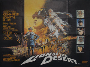 The story of Omar Mukhtar the Lion of the Desert. This is the first release original British quad film poster featuring highly detailed artwork by artist Brian Bysouth whose artists printed signature appears on the poster.