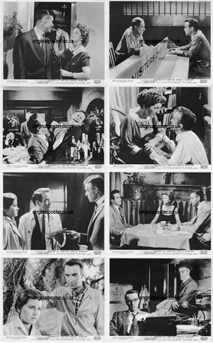 8 card British cinema front of house set from the 1958 black and white drama in which Montgomery Clift is pictured in the lead role as Adam White.