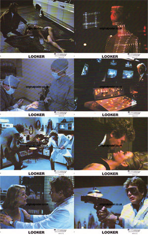 Full numbered set of British lobby cards from the cinema release of this science fiction thriller from writer/ director Michael Crichton made many years before "Jurassic Park" Plastic surgeon Albert Finney investigates the deaths of his supermodel clients and the link with the advertising agency run by James Coburn.