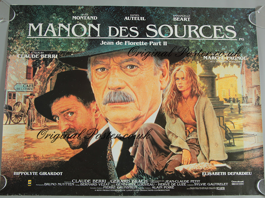 This is the double-sided British quad film poster for the film "Manon Des Sources" (Jean De Florette part II) produced in limited quantities for use in the cinema lightbox. The film poster features the printed signature of the artist and pictures Yves Montand and Elizabeth Depardieu, whose father Gerard Depardieu starred in "Jean De Florette". Very slight creasing at the bottom left border edge.