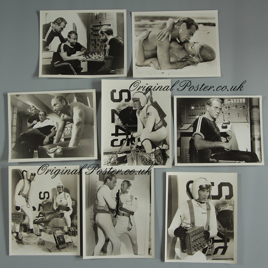 Full set of 8 cinema front of house lobby cards dating from 1968 for the Science fiction film "Mission Mars". Some interesting gadgets and space suits are pictured. Excellent condition with no pinholes.