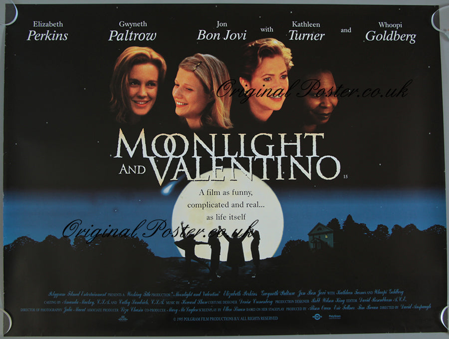 Rolled double-sided British quad for "Moonlight and Valentino" with an early appearance for Gwyneth Paltrow and also starring Jon Bon Jovi.