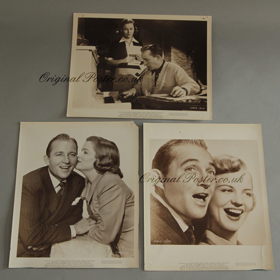These three 1950 cinema stills picture Bing Crosby with Nancy Olson in the film "Mr. Music".