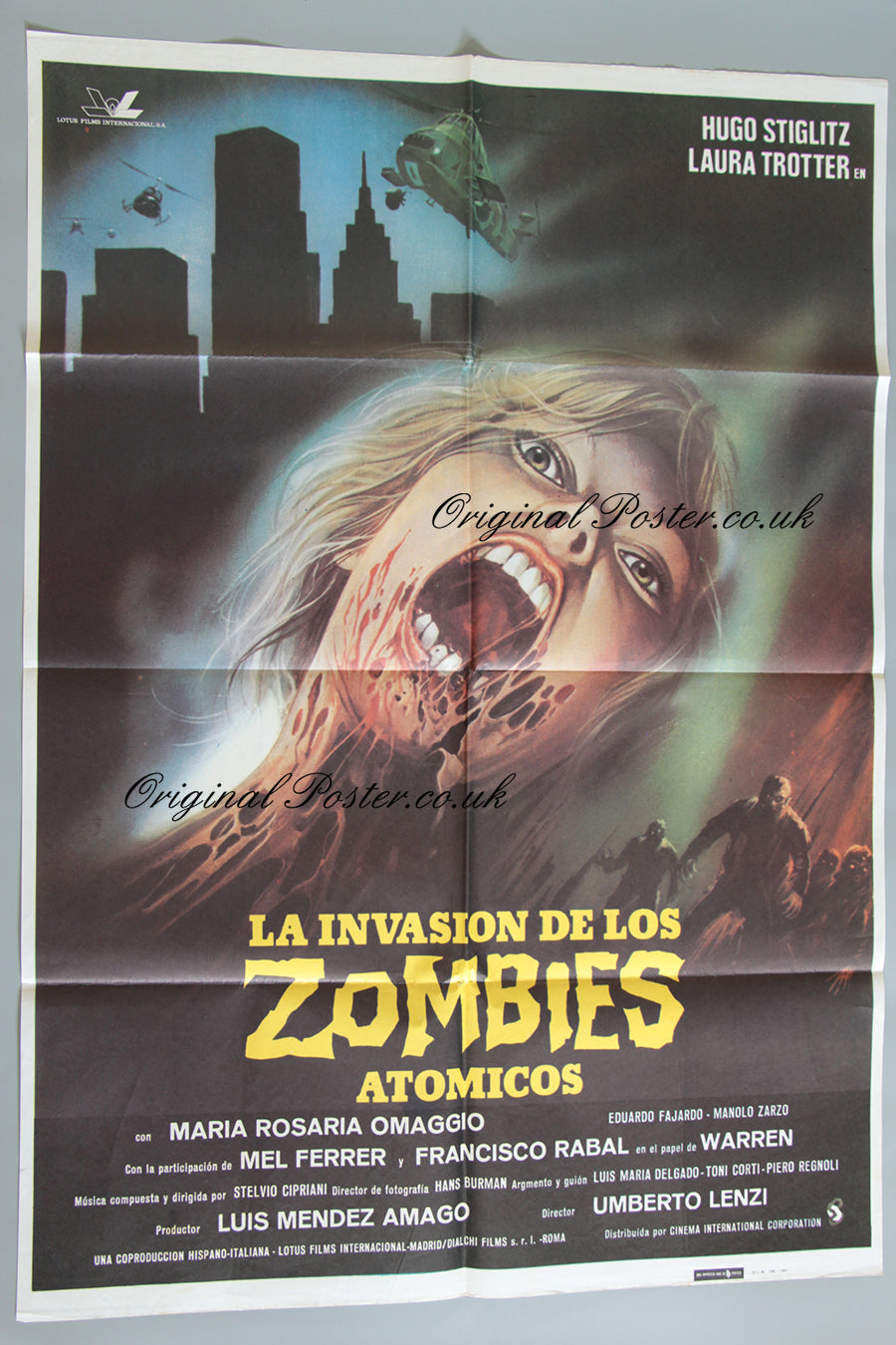 This 1981 film poster is for the "Invasion of the Zombies" also known as "Nightmare City". Great zombie artwork complete with helicopter and the New York sky line on this Italian film poster in folded condition as supplied to the cinema.