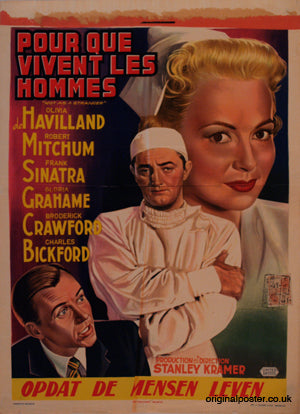 Robert Mitchum is pictured as the poor medical student who marries Swedish nurse Olivia de Havilland as she can pay his tuition fees. All star cast with Director Stanley Kramer (The Wild One) (The Caine Mutiny).
