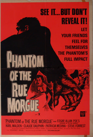 The Bells! the Bells! are the sound that sends a hypnotised gorilla mad for pretty young girls! This is an adaptation of the Edgar Allan Poe classic with a Parisian psychiatrist cast as the villain. This is probably a double-crown that has been trimmed roughly at the left hand border as double-bill features do not have a border in between them. Striking early Warner Bros. artwork with the 'X' certificate in keeping with the poster. Historic tape marks in the borders.