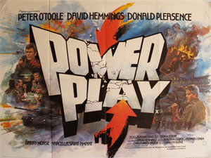 Brian Bysouth gives evidence of using his toothbrush and finger to paint this piece of art. The British quad film poster for "Power Play" is printed in England by Lonsdale & Bartholomew Ltd. Nottingham and features a great cast.