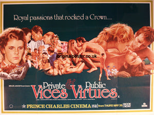 Chantrell makes practical use of an abundance of flowers and petals to avoid problems with the film censor regarding exposure of nipples. The fact that gravity should make this impossible helps to illustrate the difficult job of the artist to please all the parties involved in the illustration of the film poster. This particular quad is especially for the Leicester Square Prince Charles cinema.