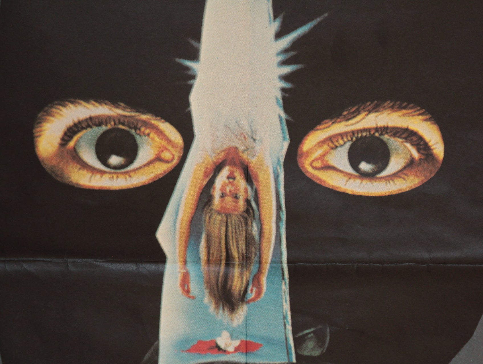 Paul Lynch directs Jamie Lee Curtis in this above average high school campus horror where an axe wielding killer turns up at the school prom looking for revenge. Folded condition British quad film poster from 1980 with no pinholes just a small cross fold hole at the middle left (repaired with archival tape), plus an small area of rough snipe removal at the bottom left in the white border which is hardly noticeable.