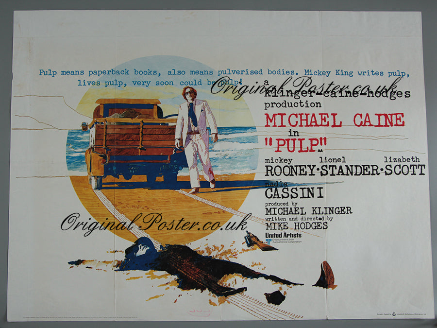 "Get Carter" was directed the previous year with Mike Hodges following the success in 1972 with "Pulp" Michael Caine is painted by Vic Fair in the role in this thriller as Mickey King. The beach scene pictures a dead body and a telescopic rifle. Printed in England by Lonsdale & Bartholomew the poster has a feint pink bleed at the lower centre border from the reverse but is otherwise quite a clean example with no pinholes for a difficult poster to find in excellent condition.