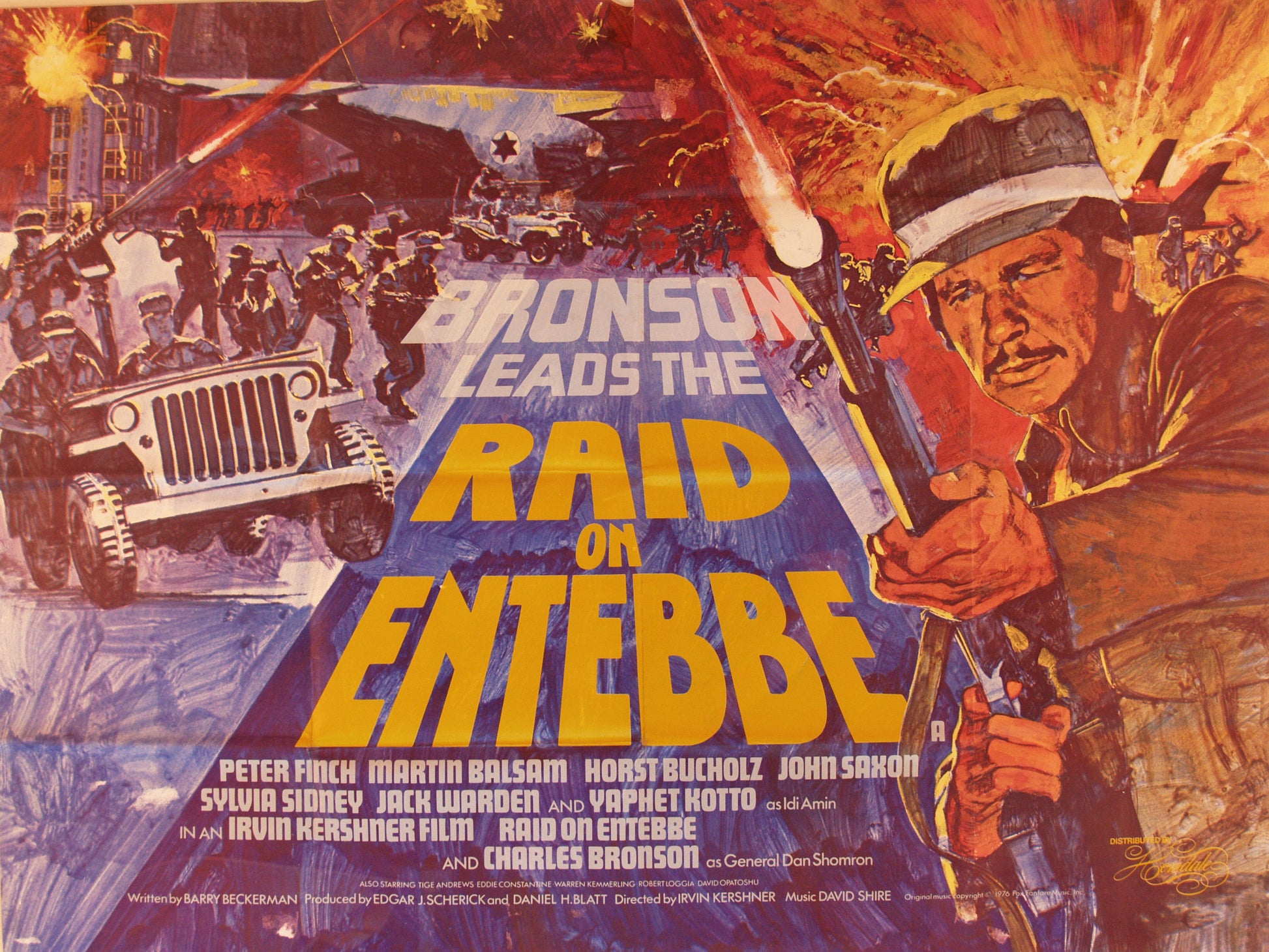 Peter Finch' last film in the role of Israeli prime minister Yitzhak Rabin. Yaphet Kotto plays President Idi Amin. A great painting of Charles Bronson by Mike Vaughan together with jeeps and soldiers.