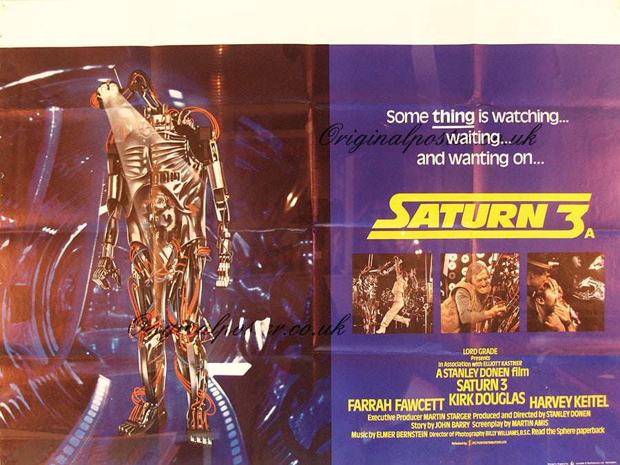 Original British quad film poster for "Saturn 3" from 1980 in folded condition.